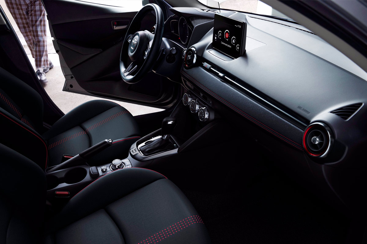 Cette nouvelle mise à jour du produit s’accompagne également de deux nouvelles versions spéciales de la Mazda2 : Homura et Homura AKA. Toutes deux présentent une calandre noire en nid d’abeille avec des accents rouges, une garniture noire brillante pour les rétroviseurs extérieurs, une antenne de type « requin » et des passages de roues réduits à l’avant et à l’arrière.