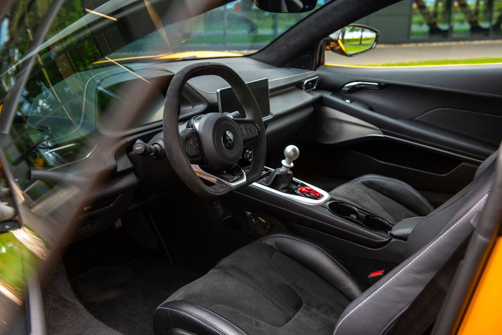 Avec l’Emira, Lotus fait ce saut tant attendu dans le futur. Il suffit de regarder le cockpit pour se rendre compte du chemin parcouru par rapport à une Exige ou une Evora. On a maintenant l’impression d’être à l’intérieur d’une voiture moderne, contemporaine et technologique qui appartient également à une marque haut de gamme. Cuir Nappa, Alcantara, plastiques souples, conception intelligente, numérisation et approche minimaliste ne sont que quelques-unes des caractéristiques.