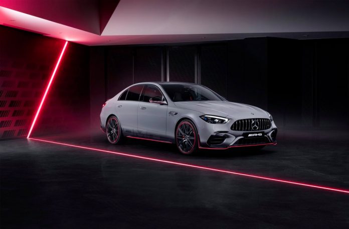 Pour la nouvelle voiture de sport rechargeable Mercedes-AMG C 63 S E PERFORMANCE, il existe une version spéciale conçue pour rendre hommage au monde de la Formule 1. Elle s’appelle « Edition F1 » et se concentre sur l’exclusivité, grâce à une série de détails dédiés. Cette voiture sportive sera disponible en version berline et break pendant un an seulement à compter du début des ventes.