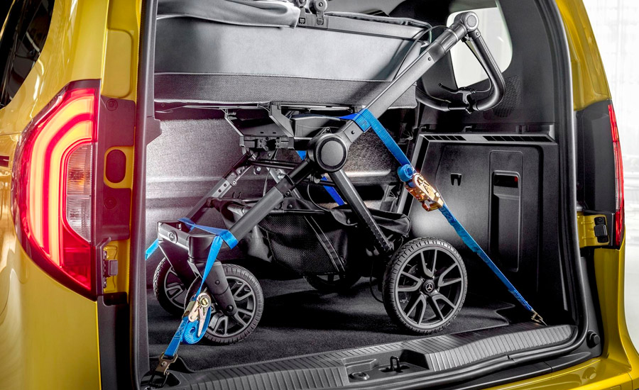Mercedes explique que le bord de chargement bas de seulement 561 mm facilite le chargement d’objets lourds. En outre, la Classe T dispose de portes coulissantes à large ouverture des deux côtés pour faciliter l’entrée et la sortie des passagers.